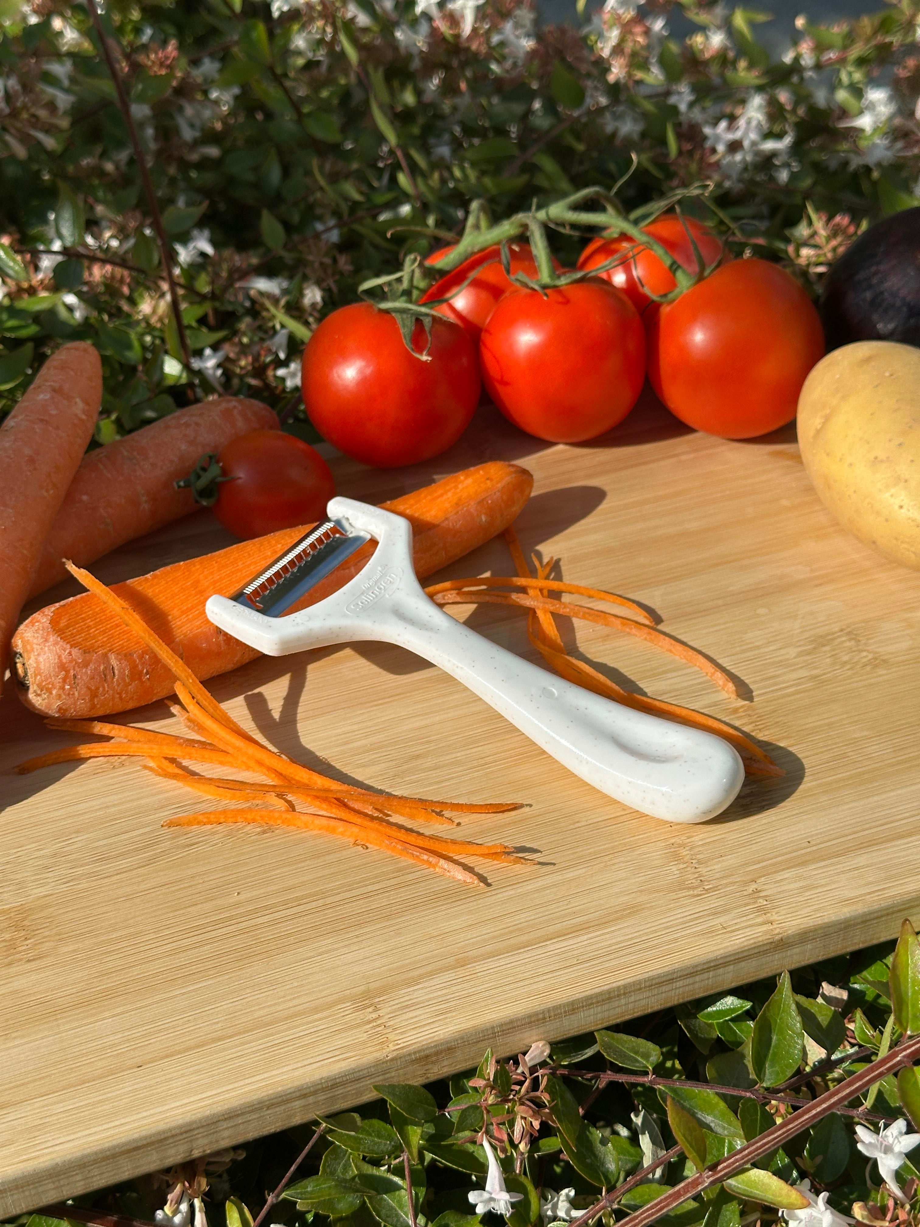 Solingen Jülyen Soyacak, paslanmaz Alman çeliği bıçağı ve ergonomik beyaz sapıyla sebze ve meyveleri pratik, hızlı ve estetik şekilde jülyen doğramanızı sağlar.