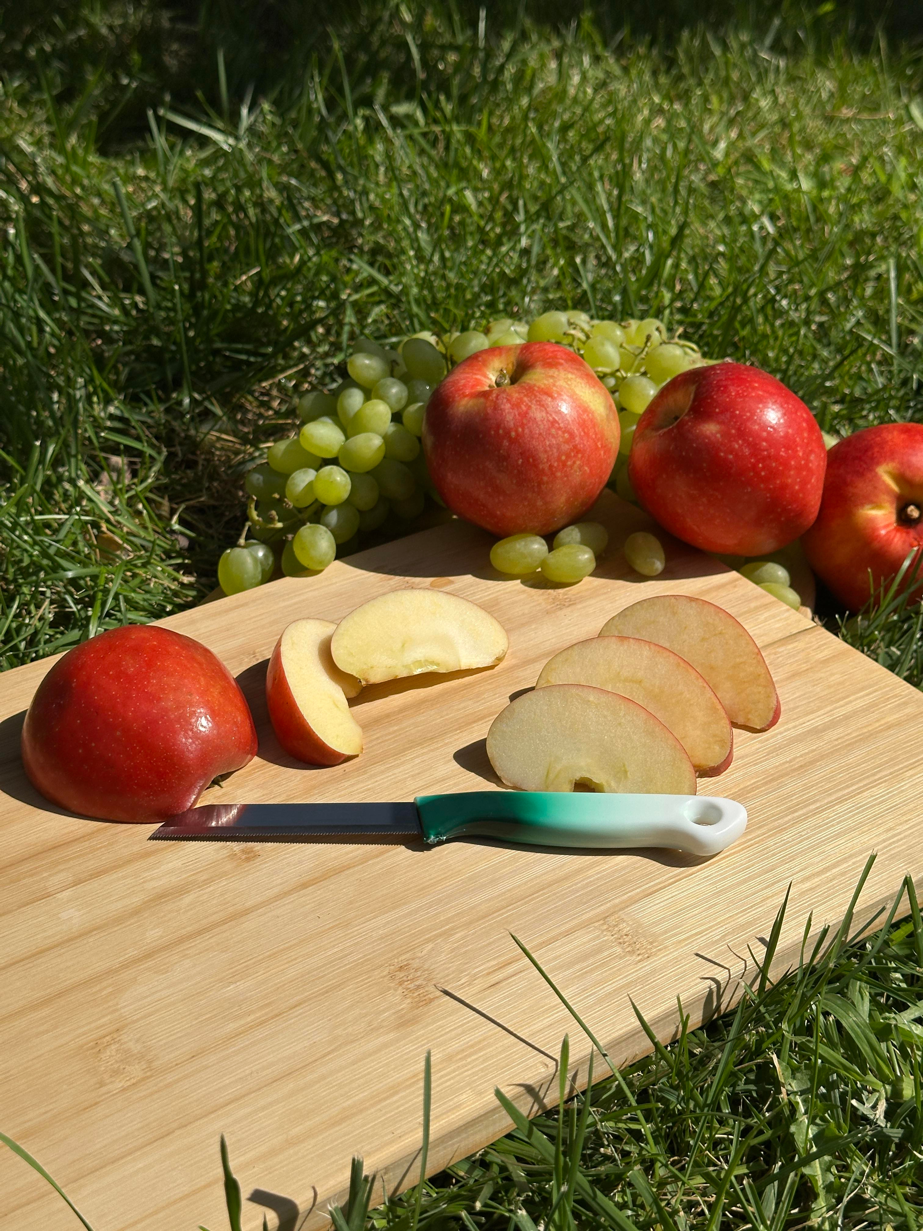 Almanya’nın Solingen şehrinde üretilmiş %100 orijinal paslanmaz çelik meyve bıçağı. Tırtıklı ağzı sayesinde bileme gerektirmeyen, ergonomik yeşil ebruli sapıyla estetik ve pratik bir mutfak yardımcısı.