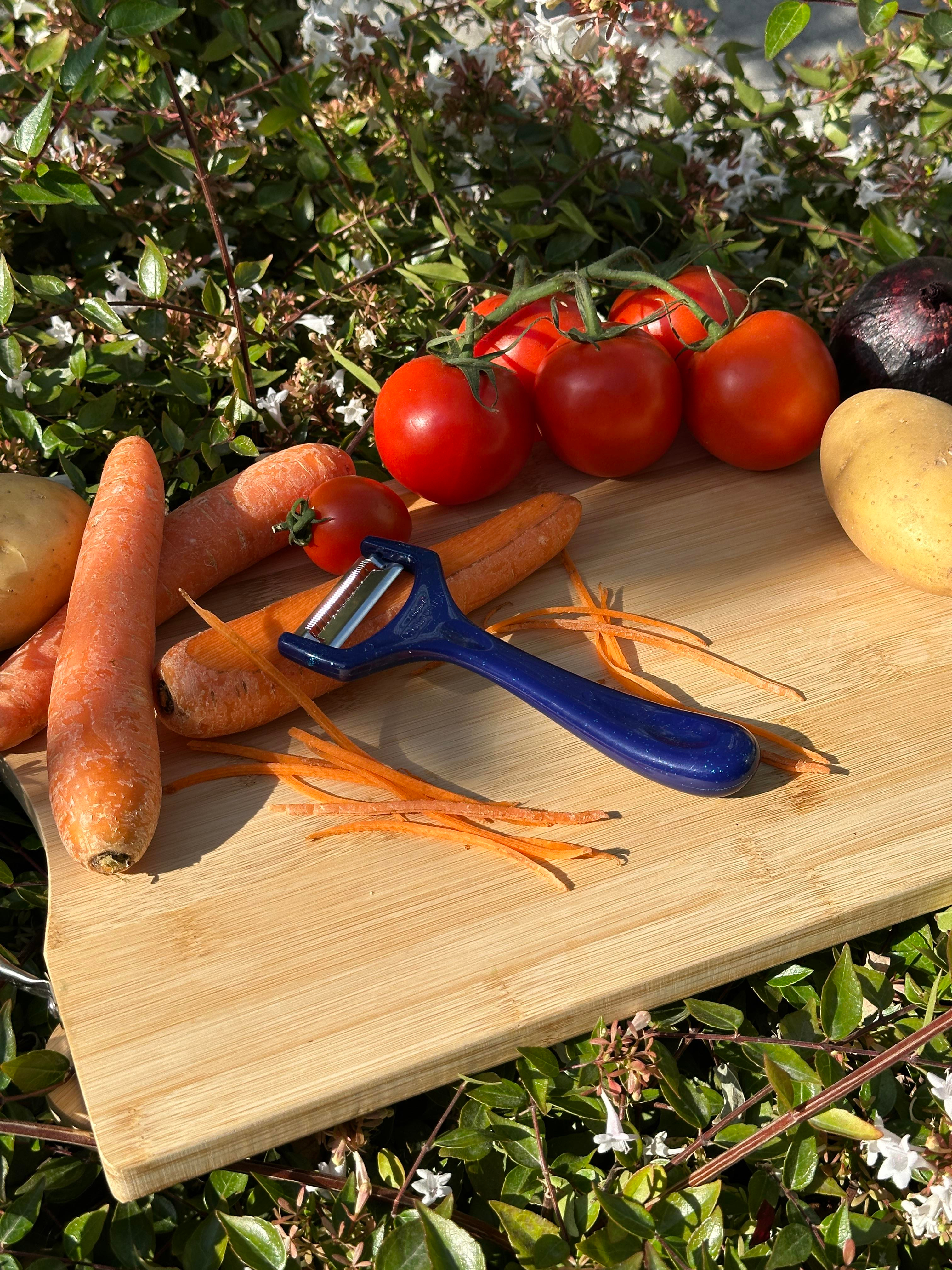Solingen Jülyen Soyacak, paslanmaz Alman çeliği bıçağı ve ergonomik mavi sapıyla sebze ve meyveleri pratik, hızlı ve estetik şekilde jülyen doğramanızı sağlar.