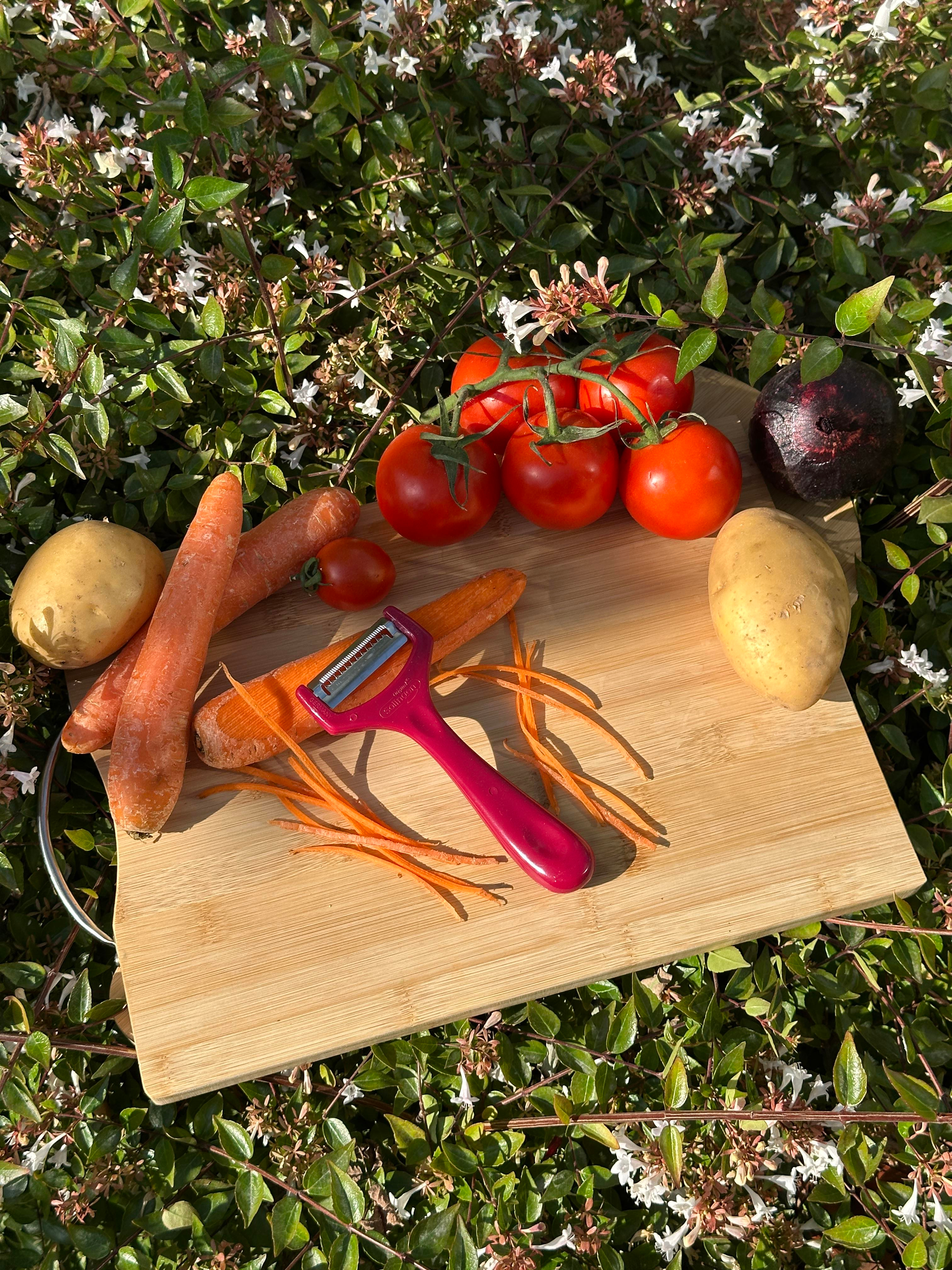 Solingen Jülyen Soyacak, paslanmaz Alman çeliği bıçağı ve ergonomik pembe sapıyla sebze ve meyveleri pratik, hızlı ve estetik şekilde jülyen doğramanızı sağlar.