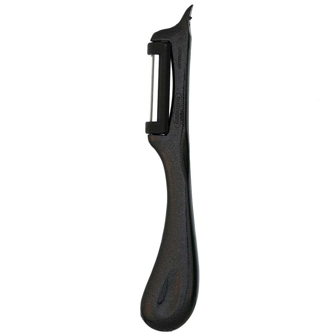 Alman Solingen ustalığıyla üretilmiş paslanmaz çelik dik soyacak, mutfakta hız, güven ve şıklığı bir arada sunar. Pırıltılı siyah ergonomik sap tasarımı ve dik konumlu çift ağızlı bıçak yapısı sayesinde sebze ve meyveleri zahmetsizce, düzenli ve ince şekilde soyabilirsiniz.