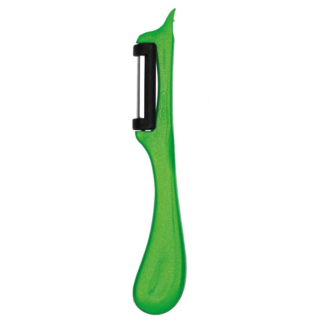 Alman Solingen ustalığıyla üretilmiş paslanmaz çelik dik soyacak, mutfakta hız, güven ve şıklığı bir arada sunar. Pırıltılı yeşil ergonomik sap tasarımı ve dik konumlu çift ağızlı bıçak yapısı sayesinde sebze ve meyveleri zahmetsizce, düzenli ve ince şekilde soyabilirsiniz.